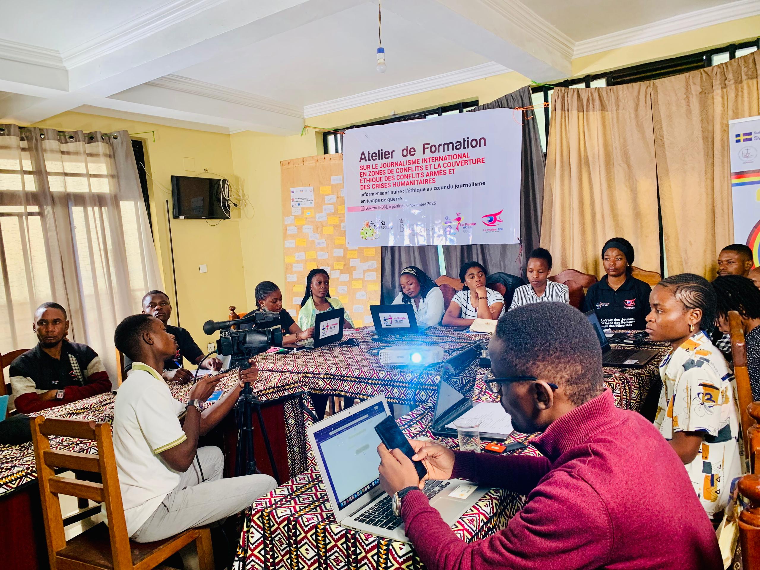 La formation, organisée avec l’appui du Fonds Kris Berwouts à travers la Fondation Roi Baudouin, a réuni une quinzaine de jeunes journalistes et stagiaires de La Prunelle RDC asbl. Pendant deux jours, ils ont échangé autour de deux grands thèmes : le journalisme international en zones de conflits et la couverture éthique des conflits armés et des crises humanitaires.