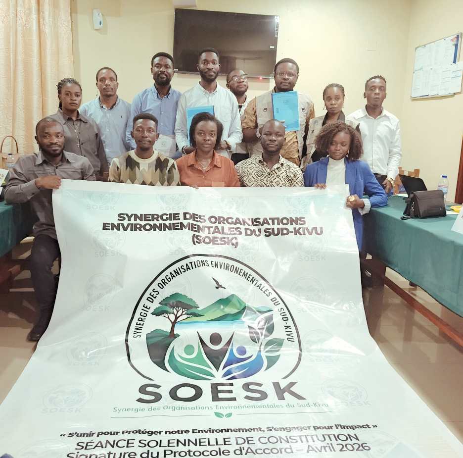 La Synergie des Organisations Environnementales du Sud-Kivu (SOESK) a été officiellement lancée vendredi 24 avril 2026 à Bukavu, lors d’une cérémonie organisée par l’organisation Alpha Impact. À cette occasion, un comité de gestion composé de six organisations membres a été mis en place pour un mandat de trois ans.