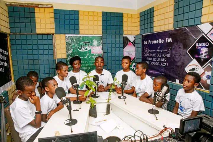 Après une séance autour du travail des médias en ligne et de La Prunelle FM, les enfants journalistes ont animé une émission sur l’environnement dans le cadre du Mois Vert organisé par la Coopération Suisse en RDC.