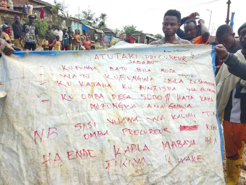 « Nous ne voulons plus de ce procureur qui emprisonne sans motif, sans jugement, et exige 5 000 dollars pour la libération d’une personne. Même les malades ne peuvent obtenir une libération. Nous réclamons son départ avant qu’un malheur pire n’arrive », pouvait-on lire sur une banderole écrite en swahili.